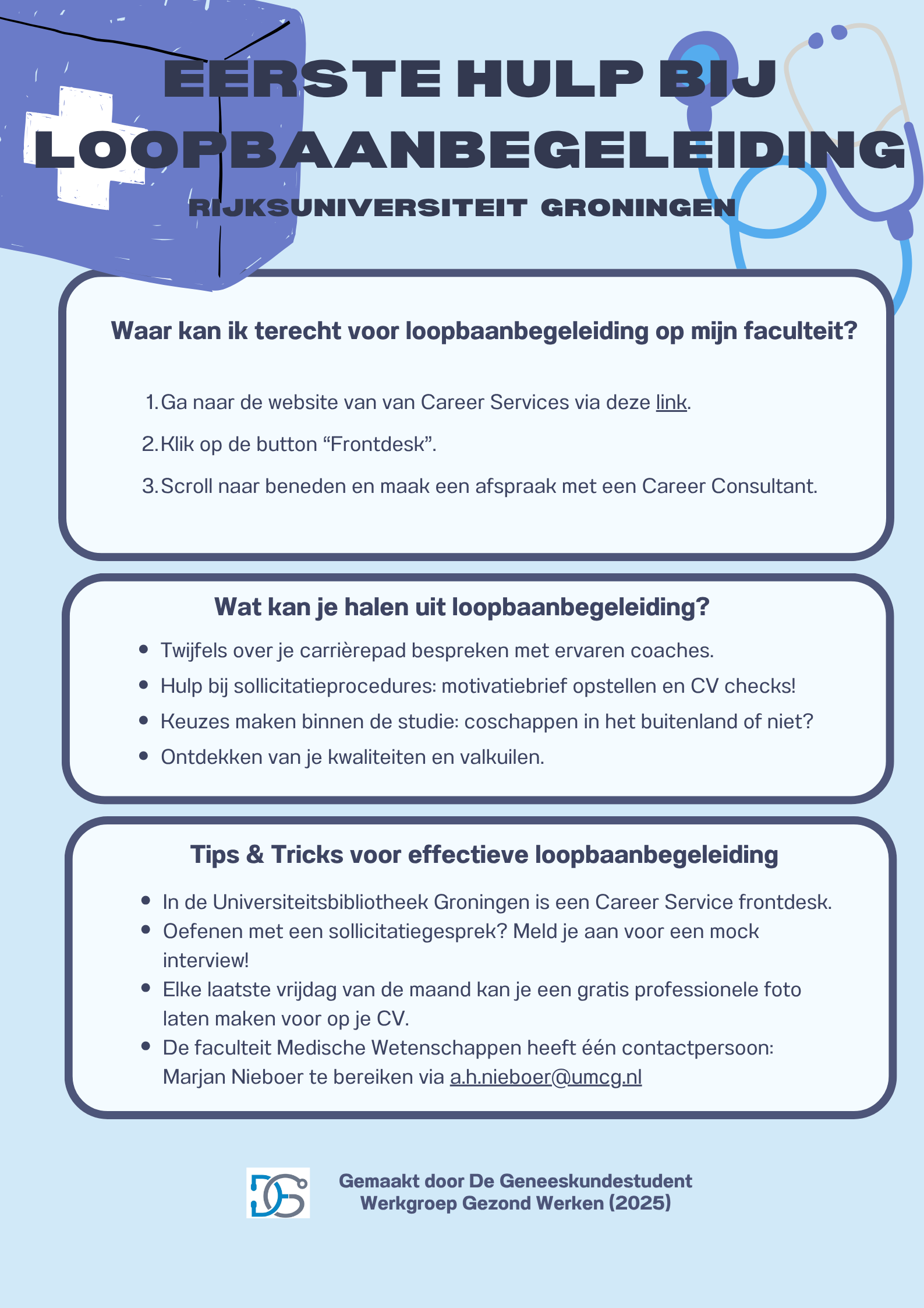 Naslagdocument infographic – begeleidingDG staat voor een veilige werkomgeving voor geneeskundestudenten. Dit vinden wij een noodzakelijke voorwaarde voor goed onderwijs en het studeren onder optimale omstandigheden. Dit document… |